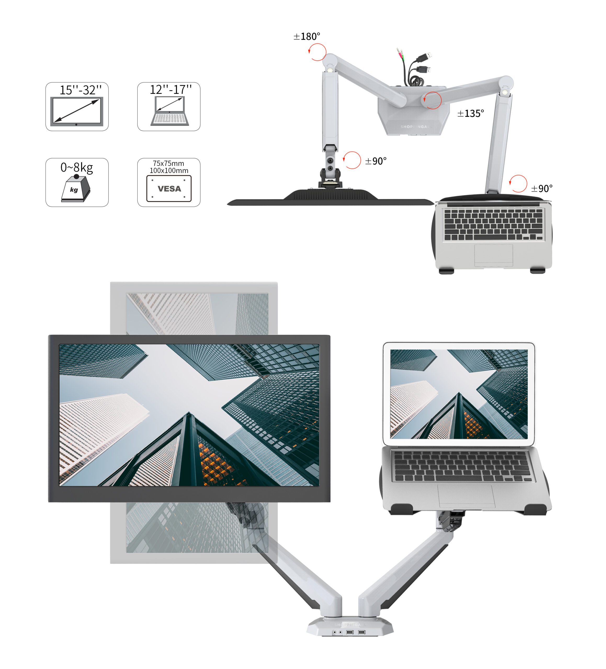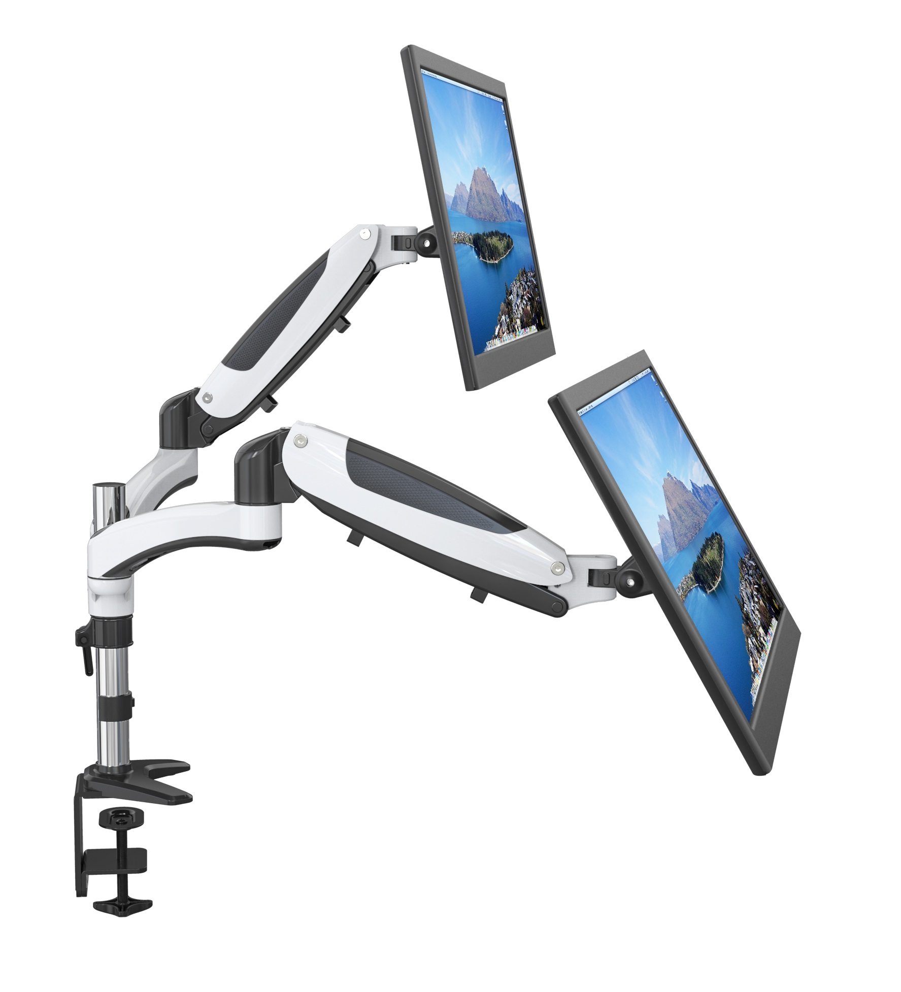 Fully Adjustable Dual Gas Spring LCD Monitor Arm Desk Mount/Stand with 2 Swing Arms for Monitors up to 32", Both Desk Clamp and Grommet Mounting Options in The Box SA-GA24