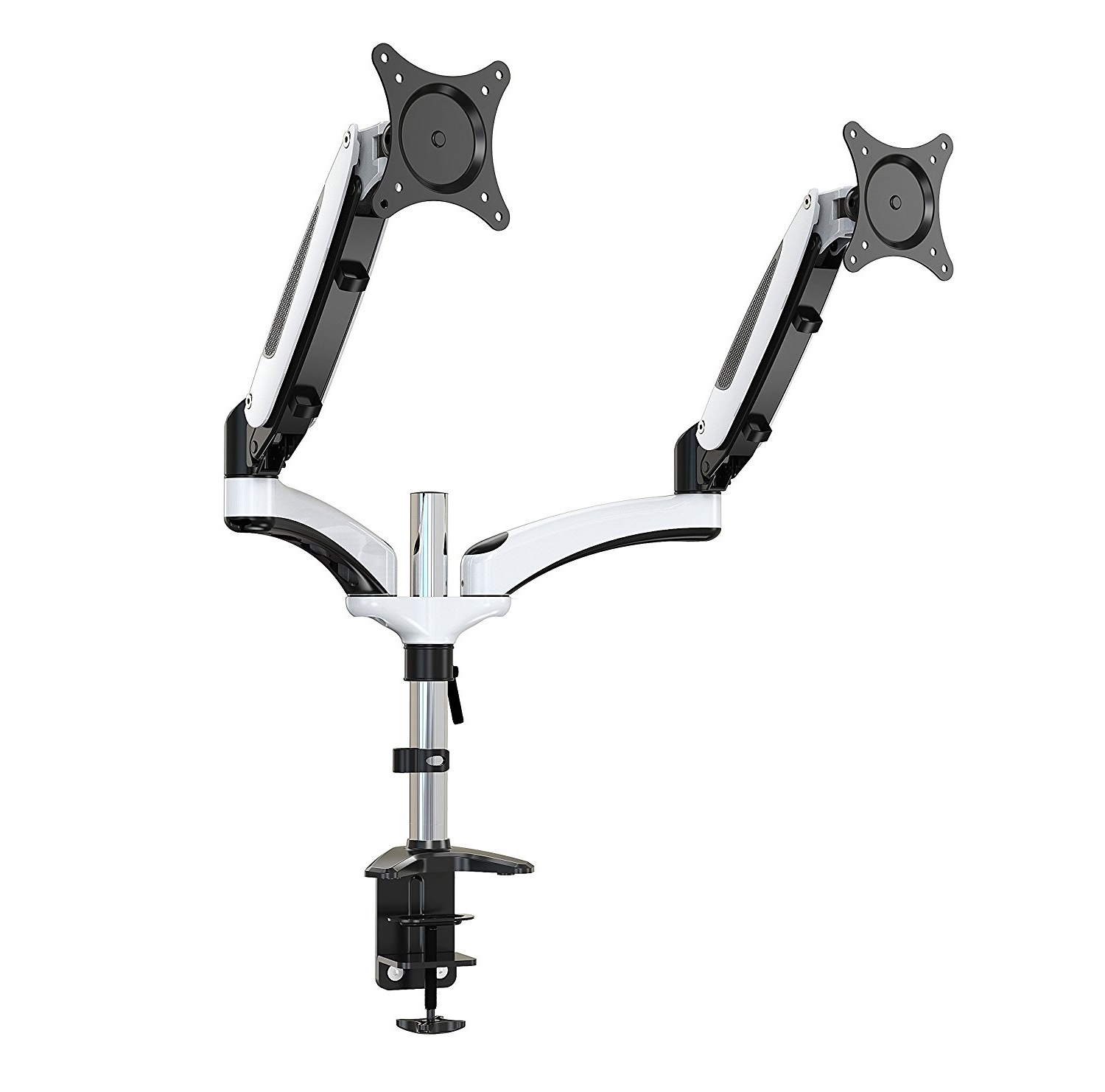 Fully Adjustable Dual Gas Spring LCD Monitor Arm Desk Mount Stand with 2 Swing Arms for Monitors up to 32", Both Desk Clamp and Grommet Mounting Options in The Box - GM124D