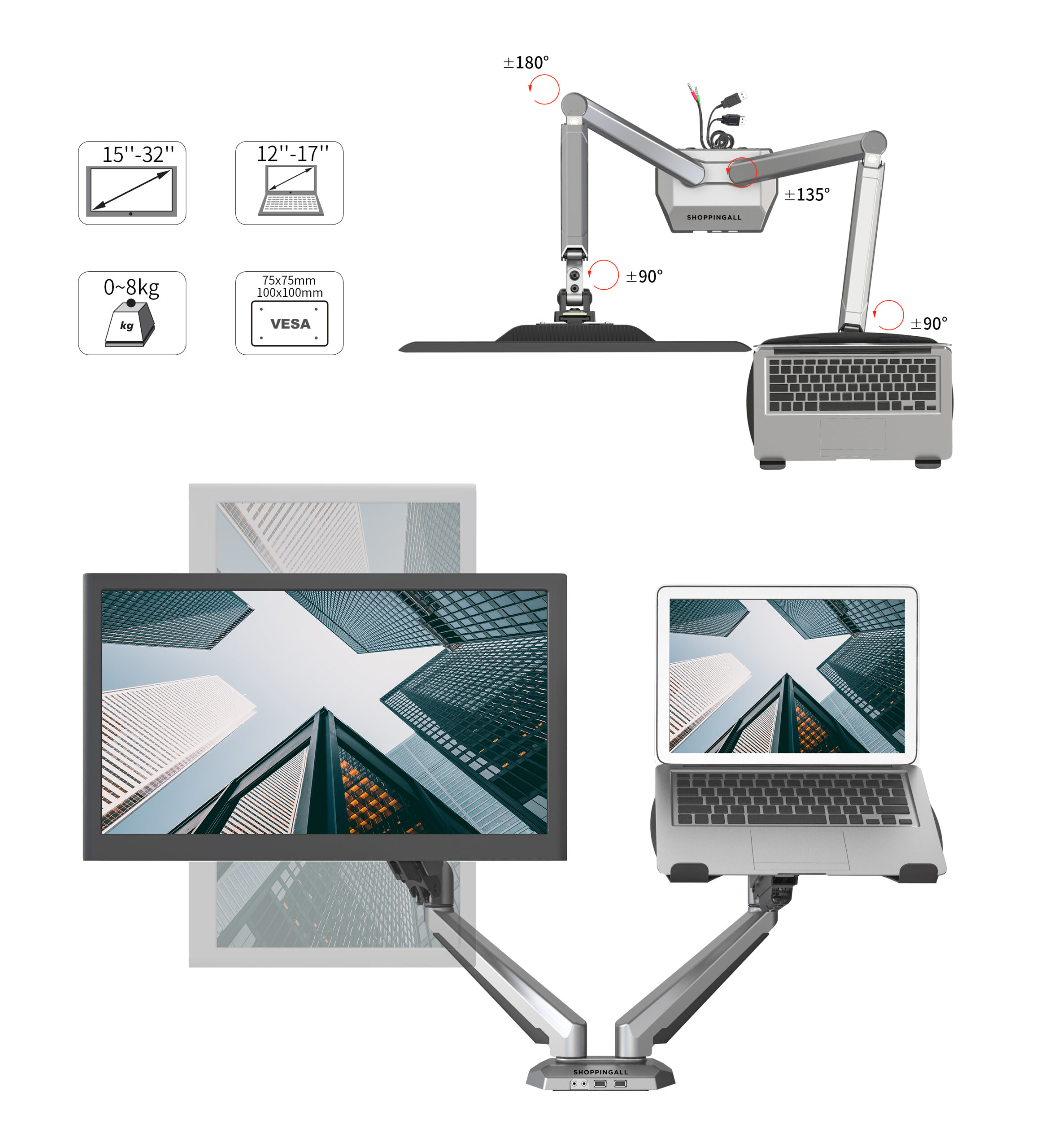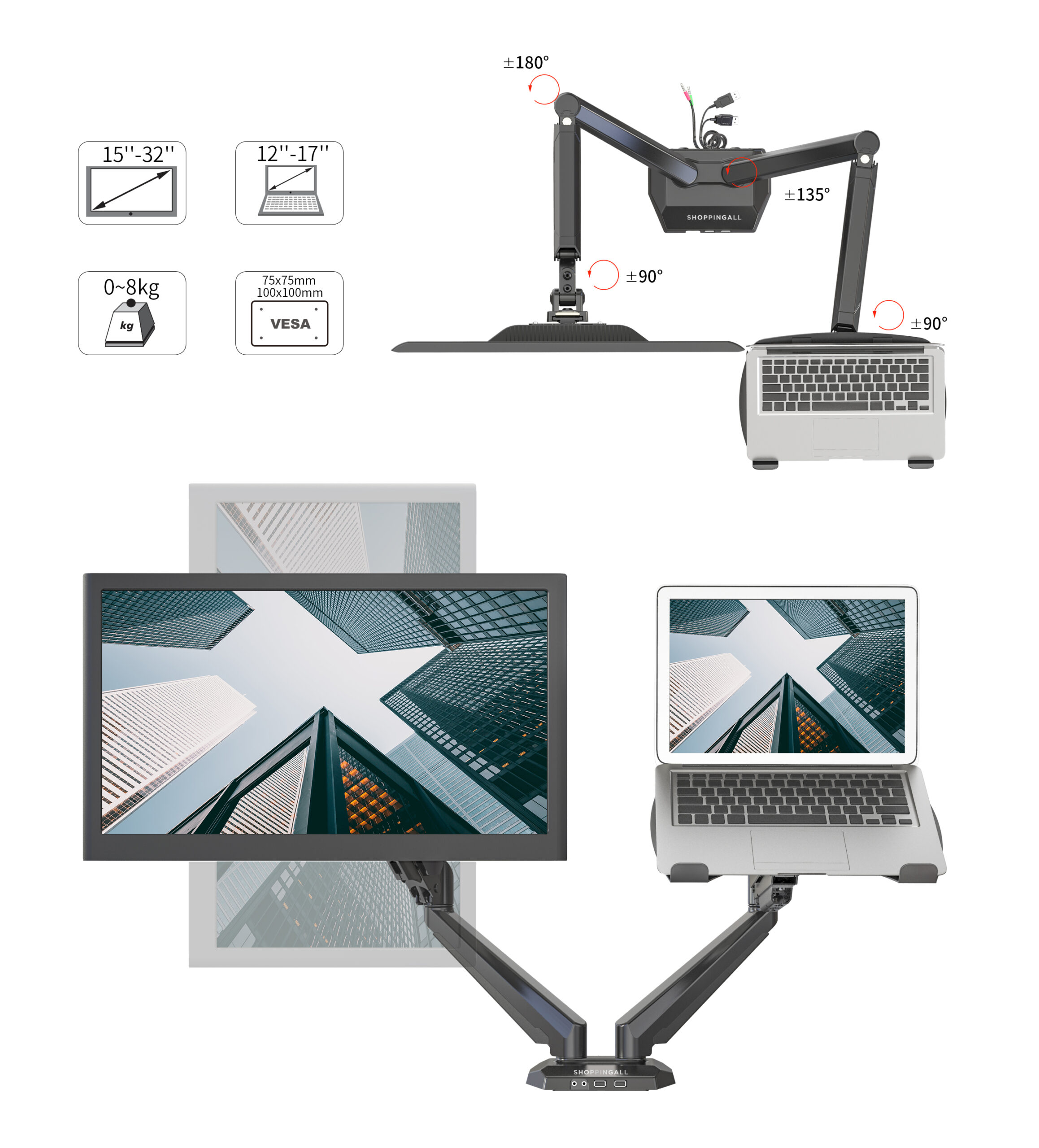 SHOPPINGALL Dual LCD LED Monitor Desk Mount Stand with C-clamp and Grommet Mounting Options | Heavy Duty Fully Adjustable Arms Hold 2 Screens up to 32 inches - SA-D29