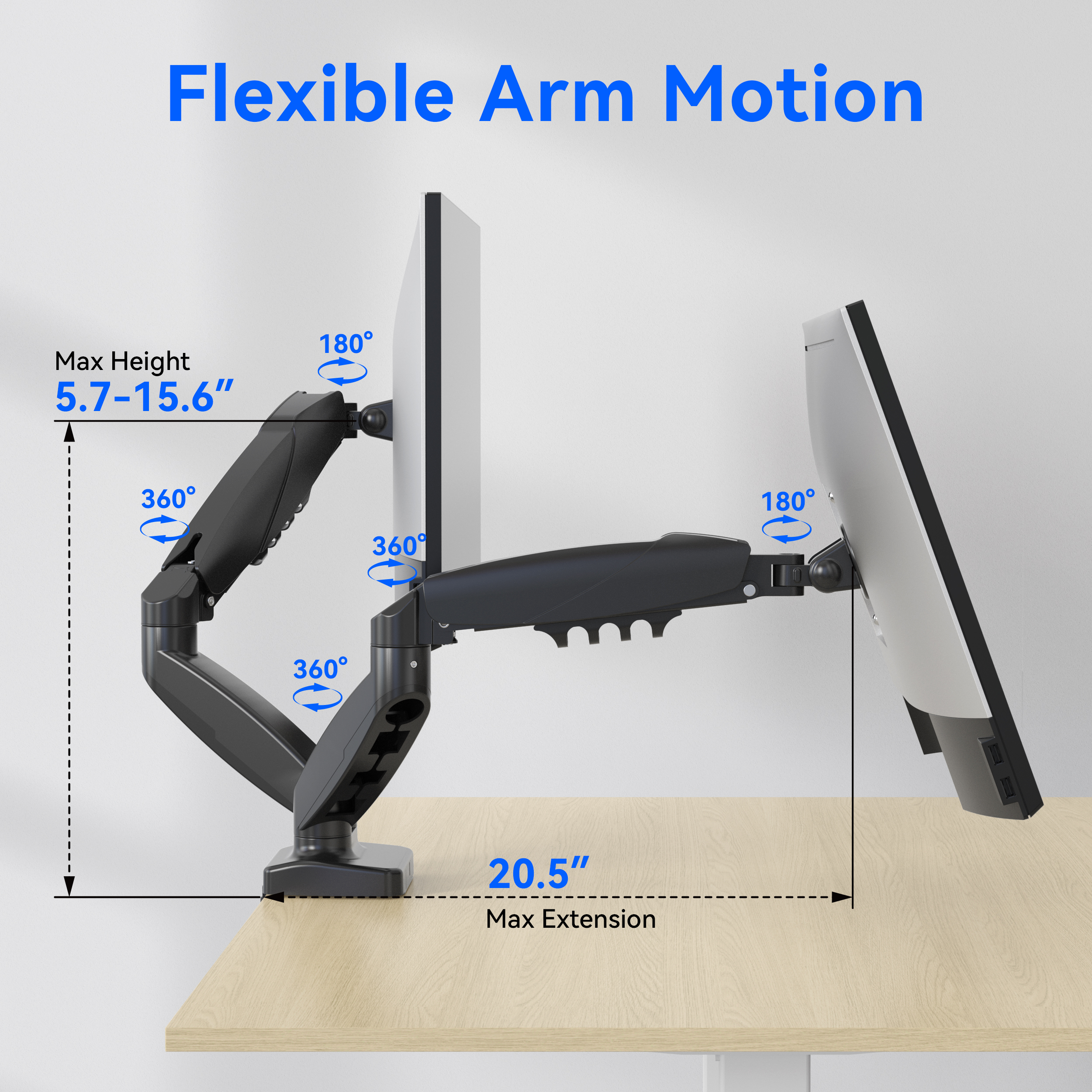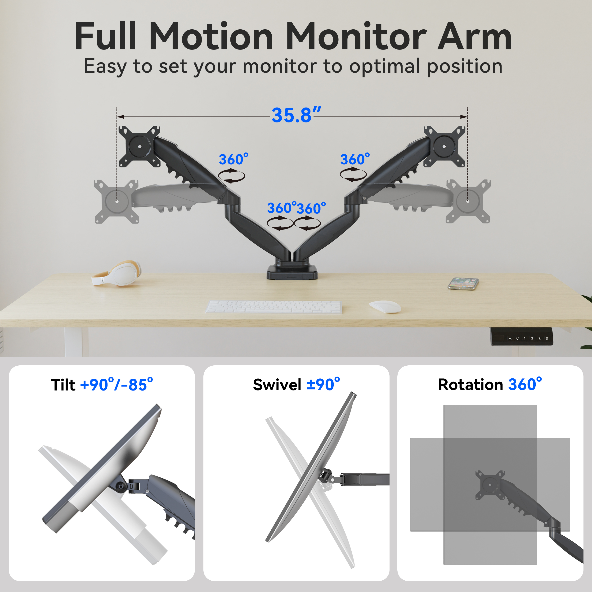 - GAS SPRING MECHANISM: Features a premium gas spring arm that allows smooth height and angle adjustments for optimal viewing position