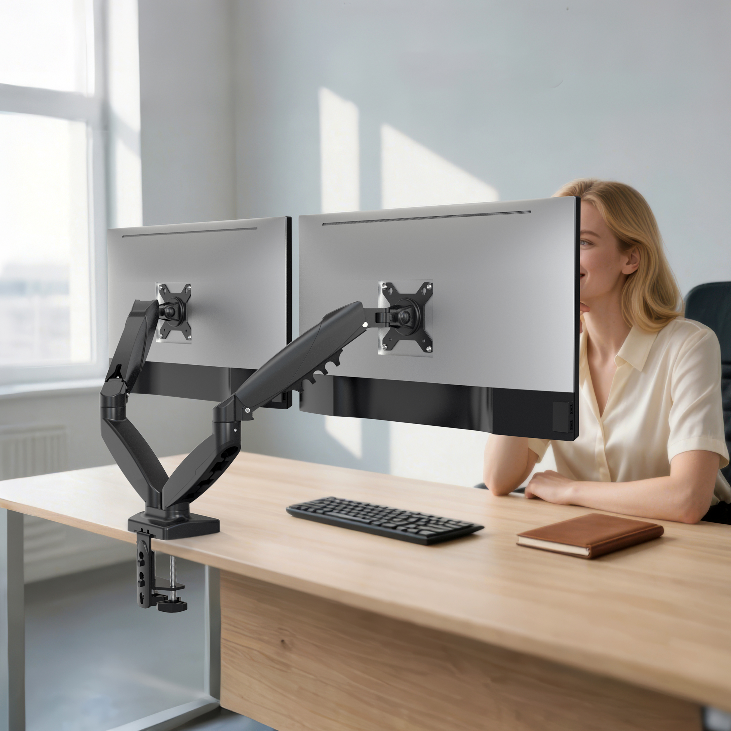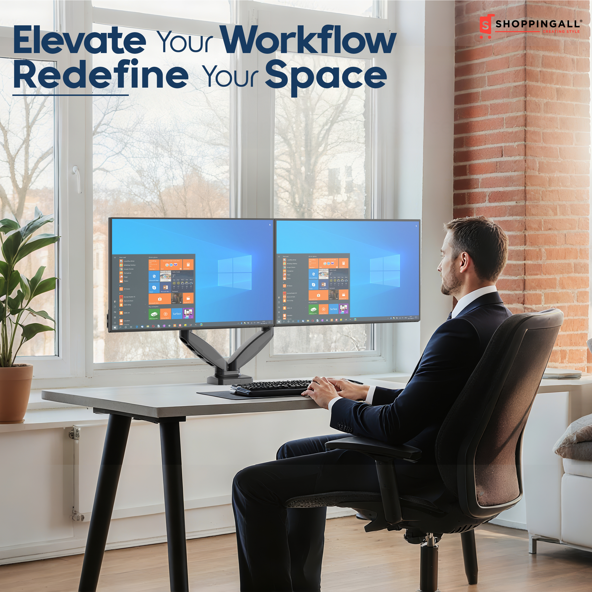 SHOPPINGALL Dual Monitor Mount for 13 to 32 Inch, Gas Spring Monitor Arm, Fully Adjustable VESA Mount with Desk Clamp – SA-GC42