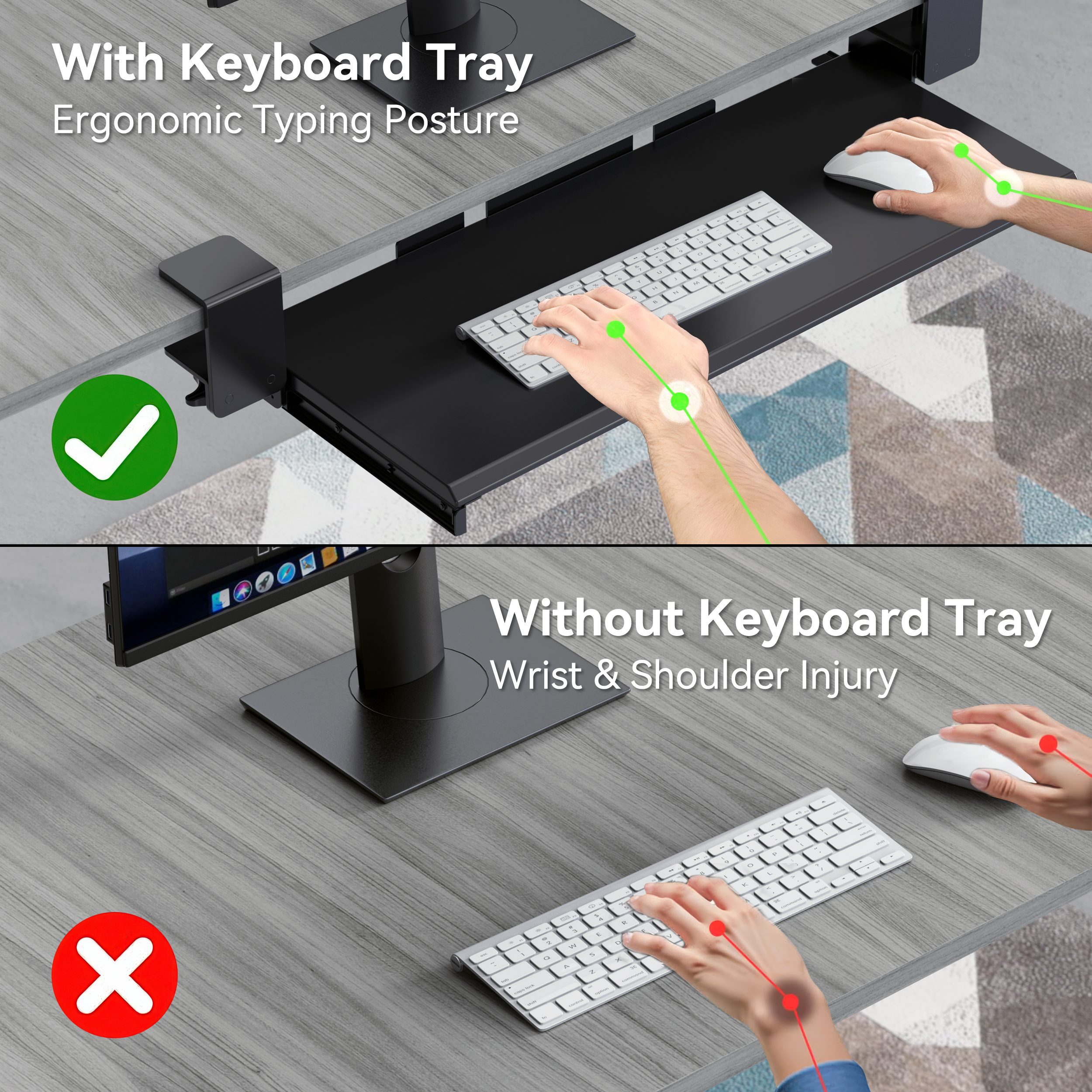 - ERGONOMIC DESIGN: Under-desk mounting helps maintain proper typing posture and reduces desk clutter